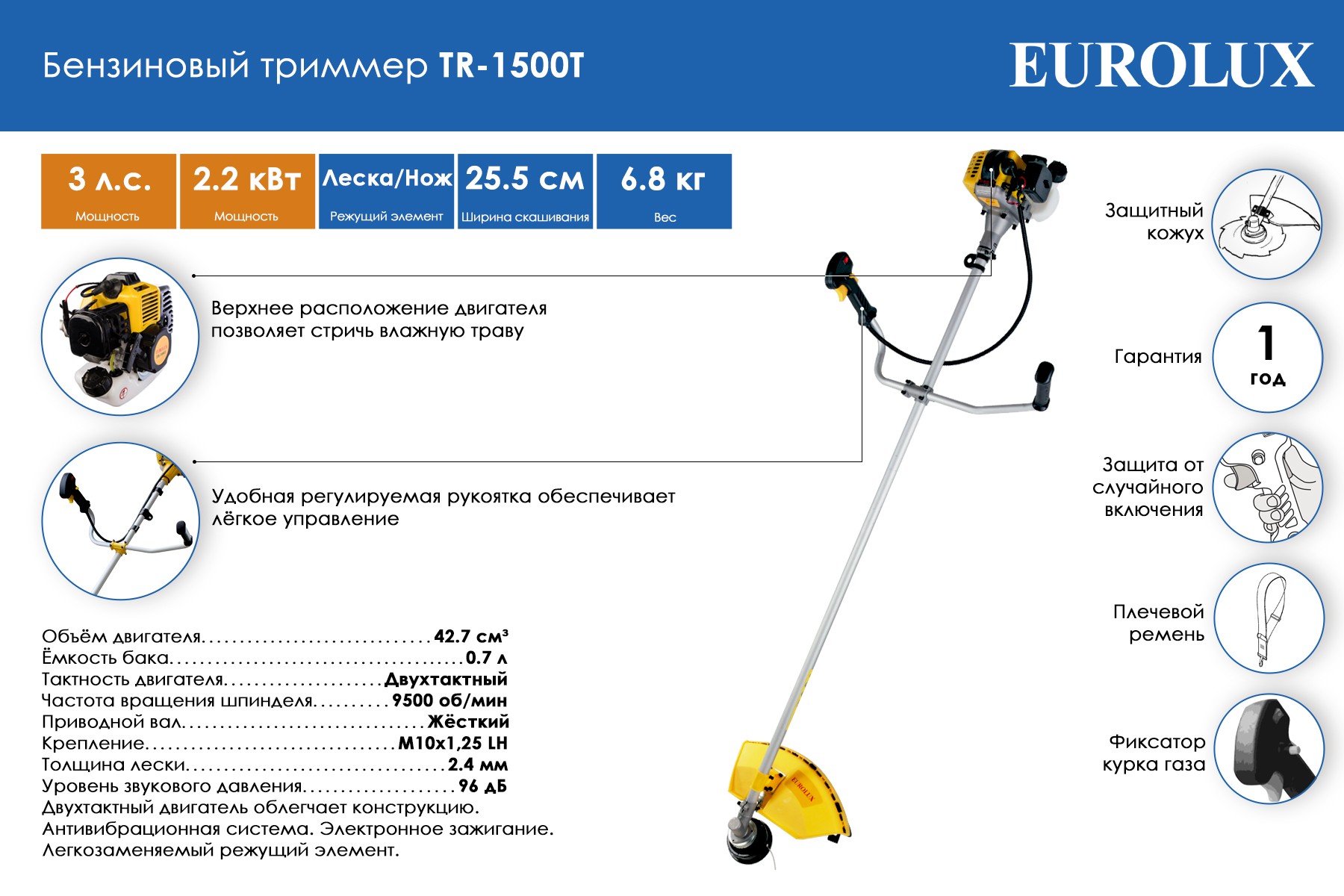 Бензиновый триммер Eurolux TR-1500T
