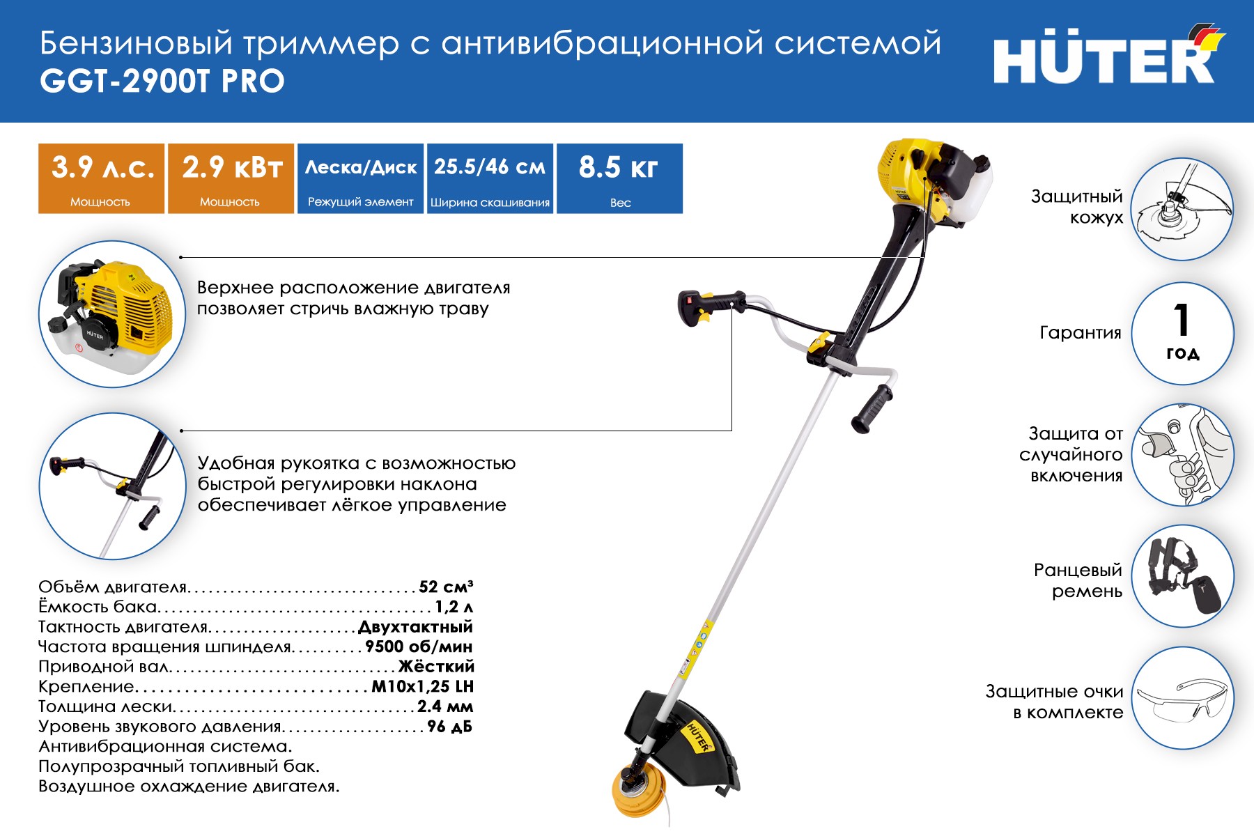 Бензиновый триммер Huter GGT-2900T PRO