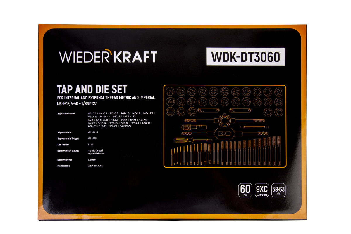 Набор метчиков и плашек WiederKraft WDK-DT3060 черный