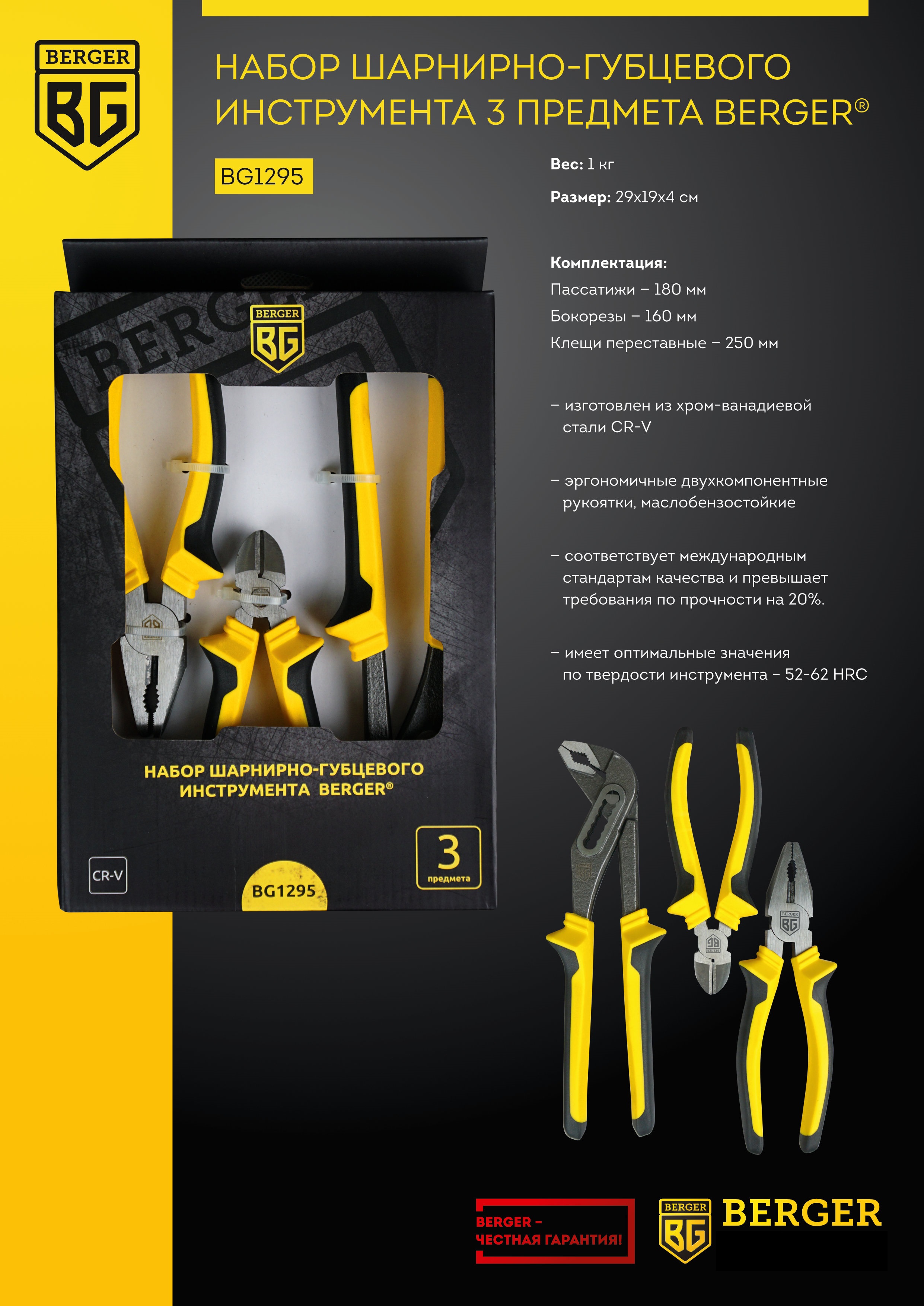 Набор ручного инструмента Berger BG черно-желтый (BG1295)