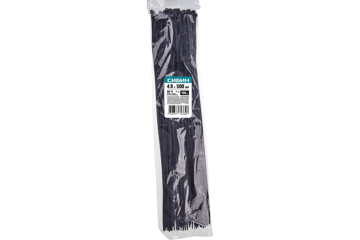 Хомут нейлоновый СИБИН 3788-48-500 (черный)