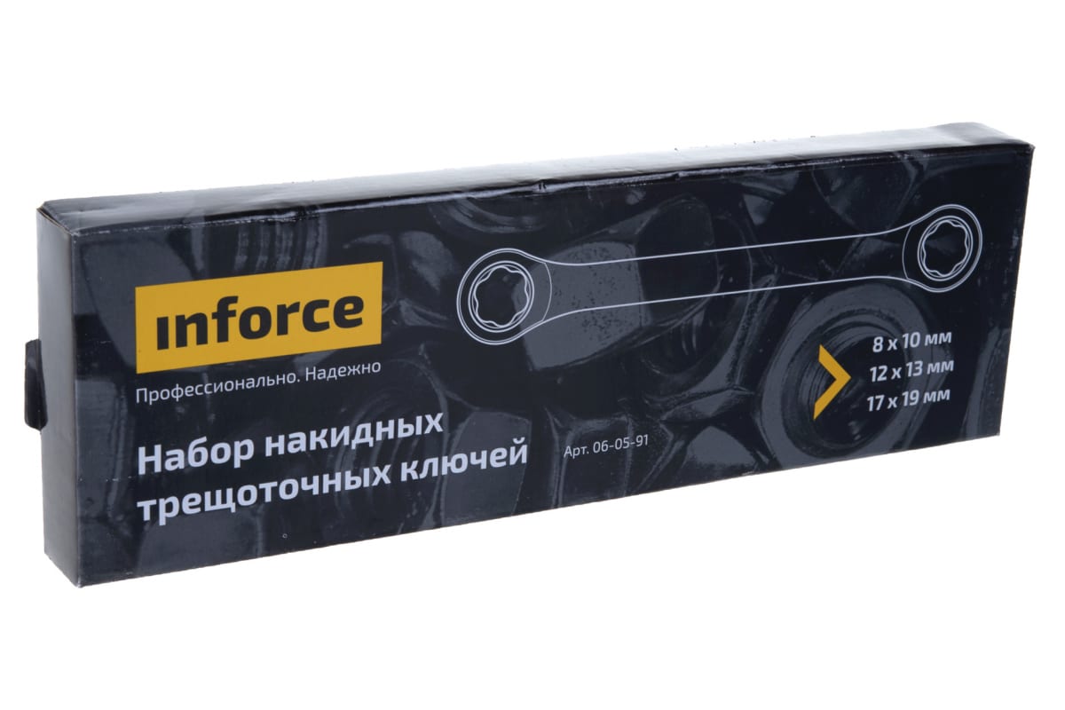 Набор накидных трещоточных ключей Inforce 06-05-91 оснащен головками для работы с шестигранным крепежом. Благодаря сумке-скрутке компактное и безопасное хранение и переноска допустимы в любых условиях. Кнопка надежно скрепляет сумку для транспортировки. Трещоточный механизм на 72 зуба имеет очень удобный мелкий шаг 5°, что позволяет работать в ограниченном пространстве; CrV – повышенная устойчивость к коррозии и образованию ржавчины; Специальная закалка обеспечивает твердость металла 46HRC; Специальная форма зева Inforce 06-05-91 позволяет работать даже с поврежденным на 80% крепежом.