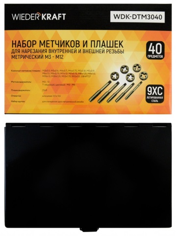 Набор метчиков и плашек WiederKraft WDK-DTM3040 (черный)