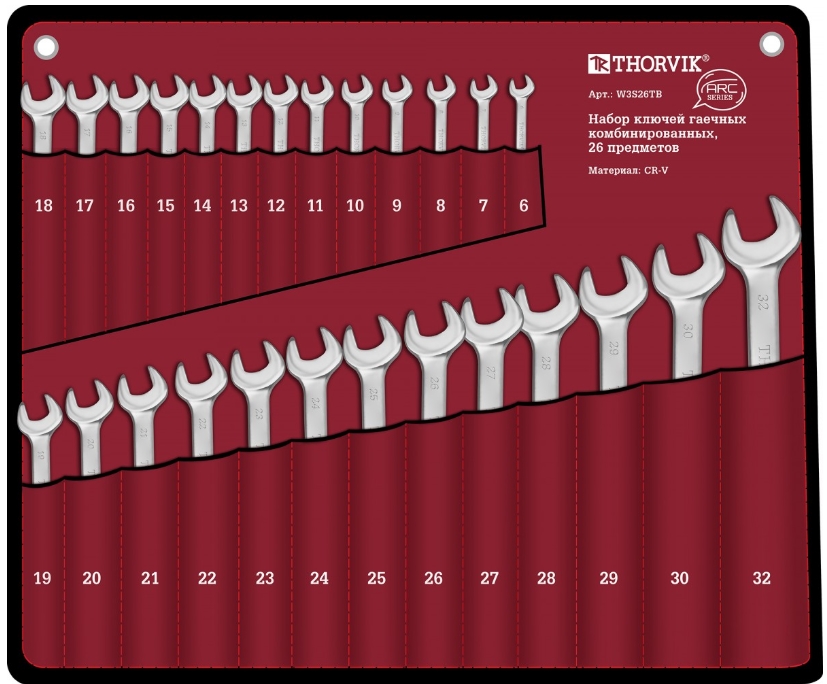 Набор комбинированных ключей Thorvik W3S26TB серебристый (52610)