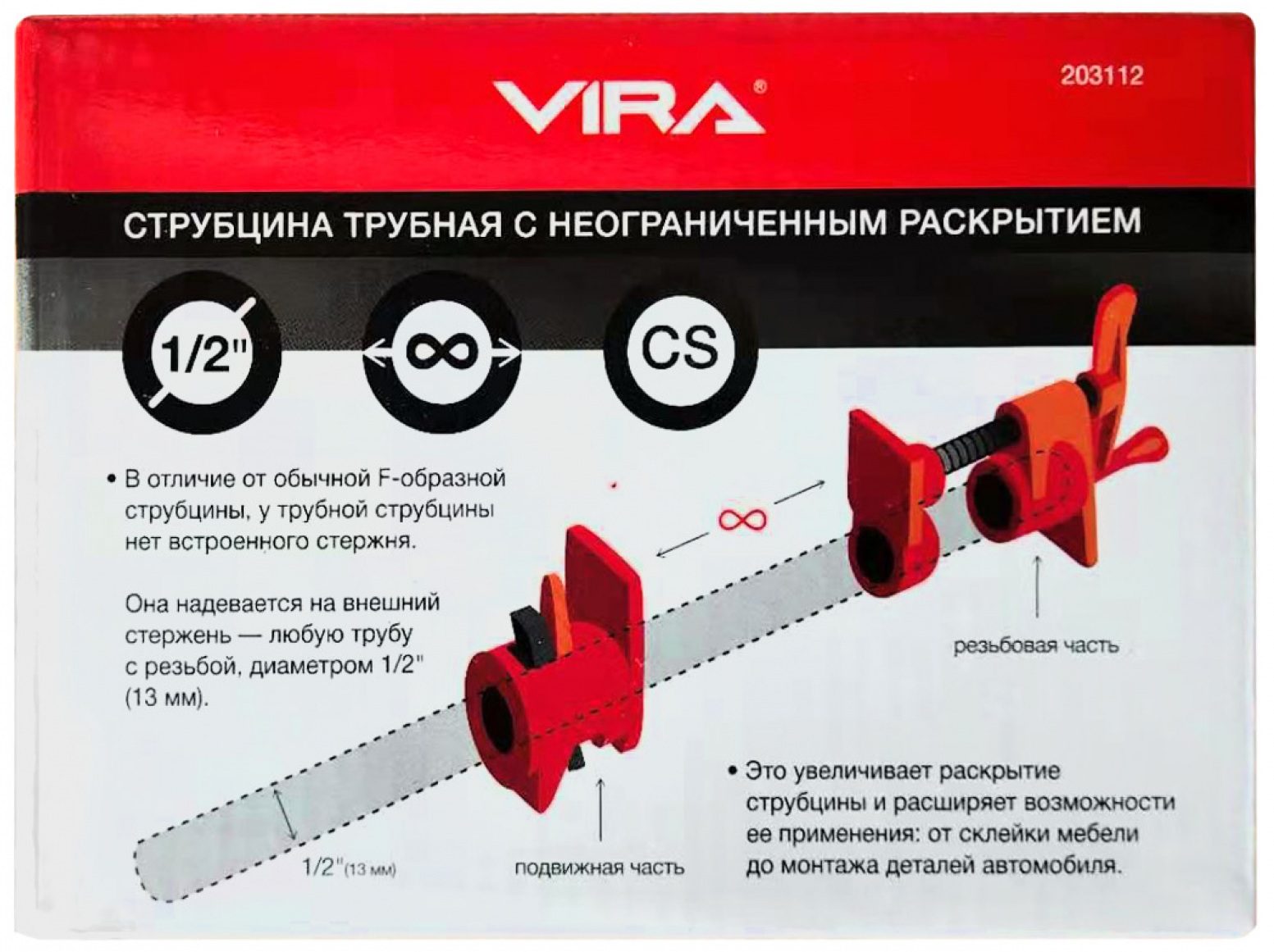 Струбцина VIRA трубная 1/2" (красный)