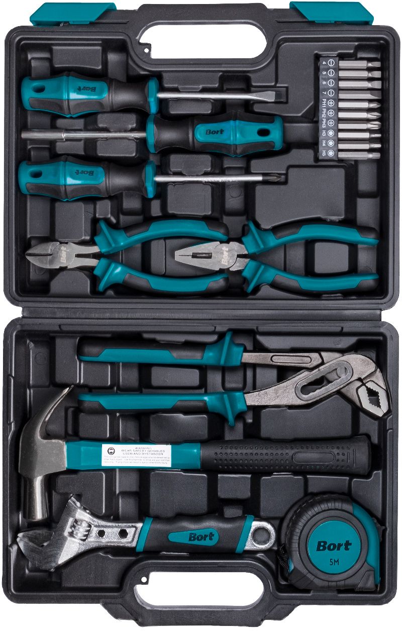 Набор ручного инструмента BTK-19 – это 19 незаменимых помощников в любом деле. Этот потрясающий высококачественный набор станет прекрасным подарком и лучшим помощником для любого мужчины, как опытного мастера, так и любителя домашнего ремонта. Набор ручных инструментов ВТК-19 прекрасно справится с любой задачей: неисправность сантехники, электропроводки, сборка и ремонт мебели, В комплект входит самый необходимый набор инструментов: несколько видов отверток, пассатижи, биты, шестигранные ключи, торцевые головки разного диаметра, разводной ключ, бокорезы, канцелярский нож, рулетка. Все они изготовлены из прочного металла с прорезиненными ручками для более удобного и уверенного использования. Этот набор имеет оптимальное сочетание всего необходимого.