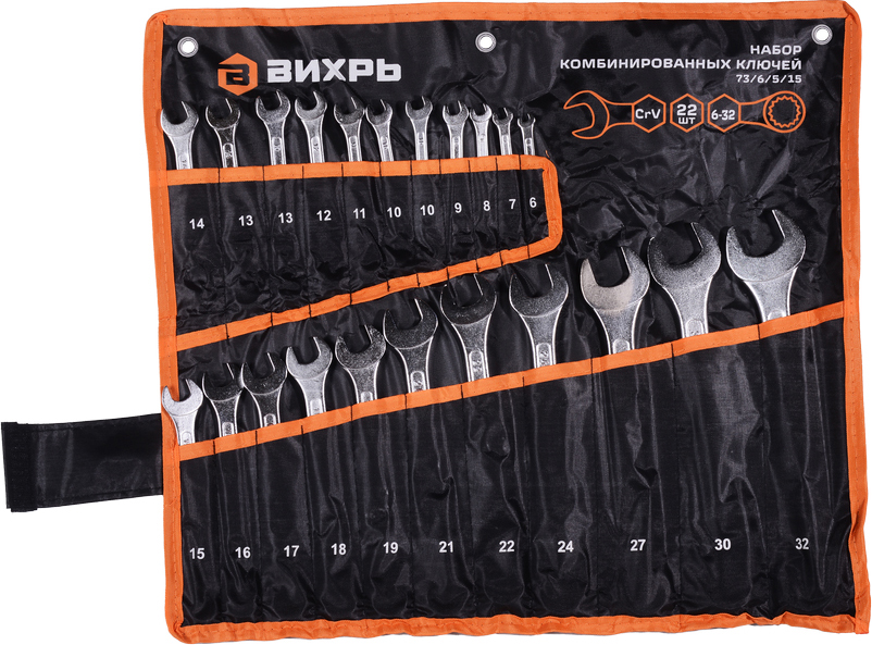 Набор комбинированных ключей Вихрь 73/6/5/15 черно-оранжевый
