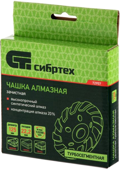 Алмазная чашка СИБРТЕХ 72957 125 мм зеленый
