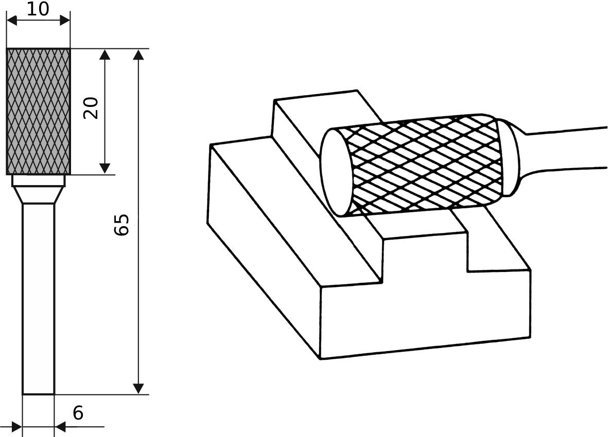 Борфреза ПрофОснастка твердосплавная №110 10x6x20x65 мм (серый металлик)