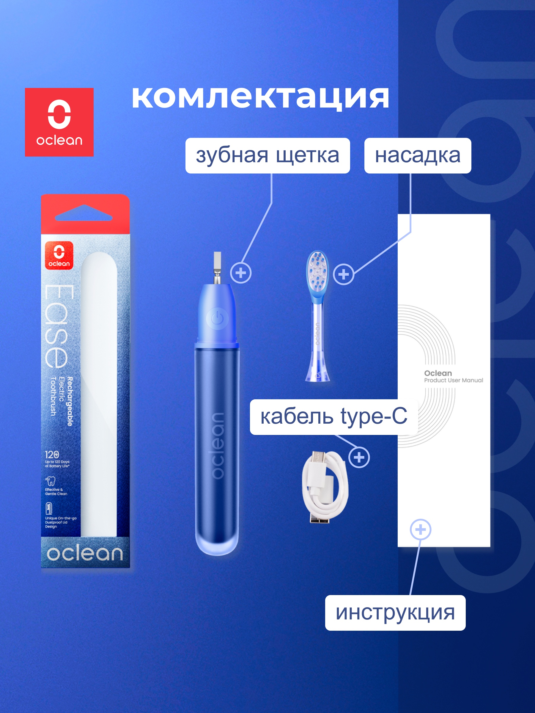 Электрическая зубная щетка Oclean Ease синий