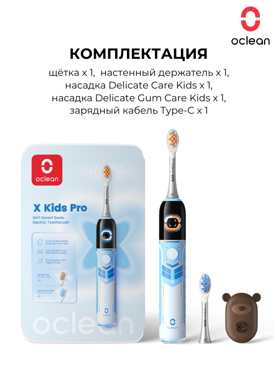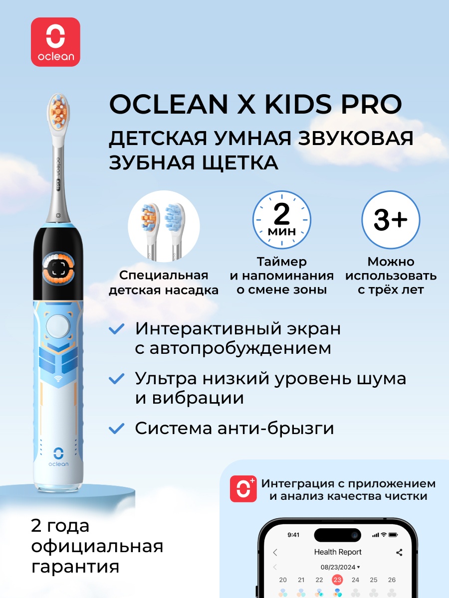 Детская электрическая зубная щетка Oclean X Kids Pro (голубой)