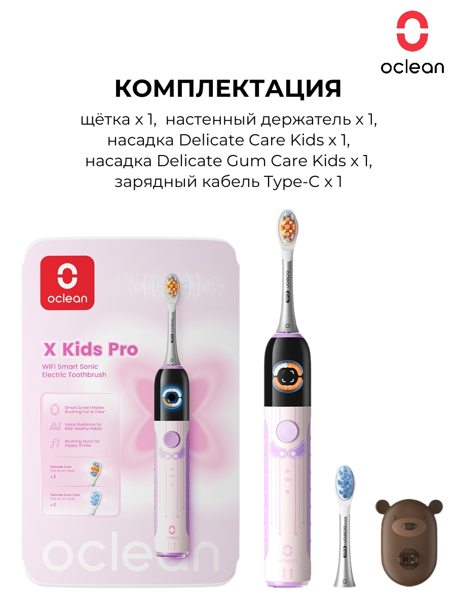 Детская электрическая зубная щетка Oclean X Kids Pro (розовый)