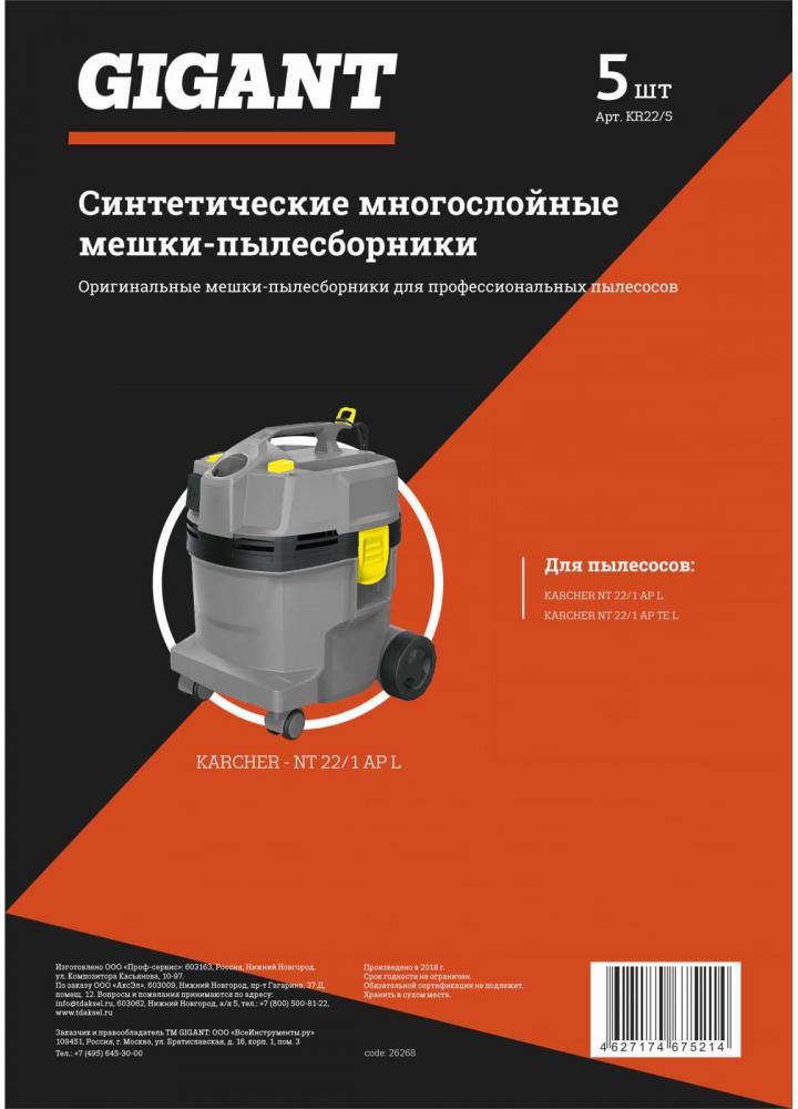 Мешок пылесборный Gigant KR22/5 белый (KR 22/5)