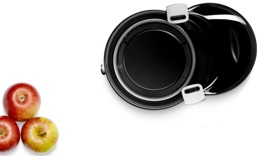 - Полная безопасность. Соковыжималка запускается только в полностью собранном состоянии с опущенными фиксаторами крышки. Широкие нескользящие ножки предотвращают ее случайное смещение и падение при интенсивной работе.