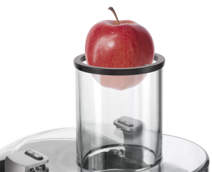 - Простая загрузка. В широкий желоб помещаются неразрезанные яблоки, апельсины и некоторые другие фрукты.