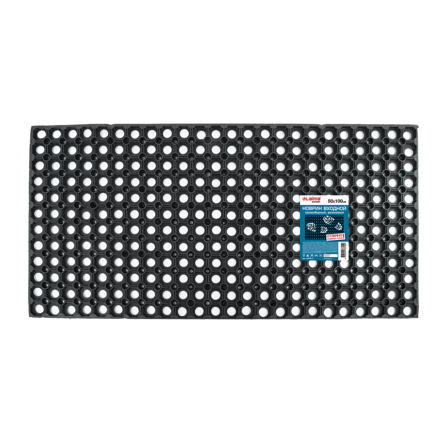Коврик входной резиновый грязесборный ячеистый LAIMA EXPERT. Крупноячеистое резиновое покрытие защищает помещение от уличной грязи. Служит препятствием для песка и крупной грязи. Идеально размещать в зонах перед ворсовыми коврами. Толщина коврика равна 16 мм. Размер - 50х100 см. Цвет - черный.