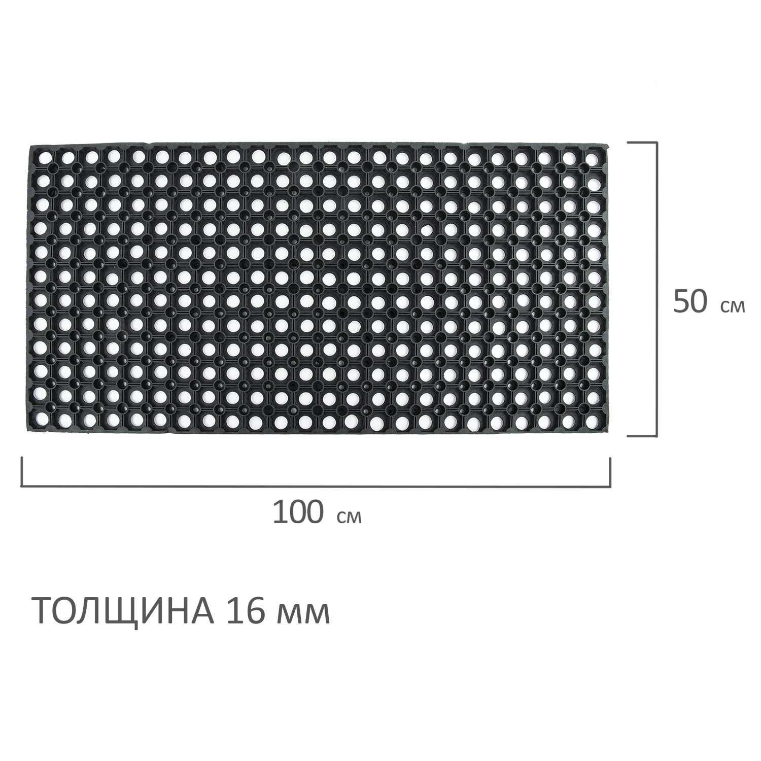 Ковер ЛАЙМА входной резиновый грязесборный ячеистый толщина 16мм, 50х100см черный