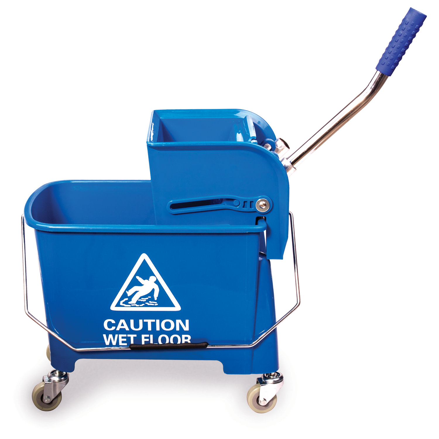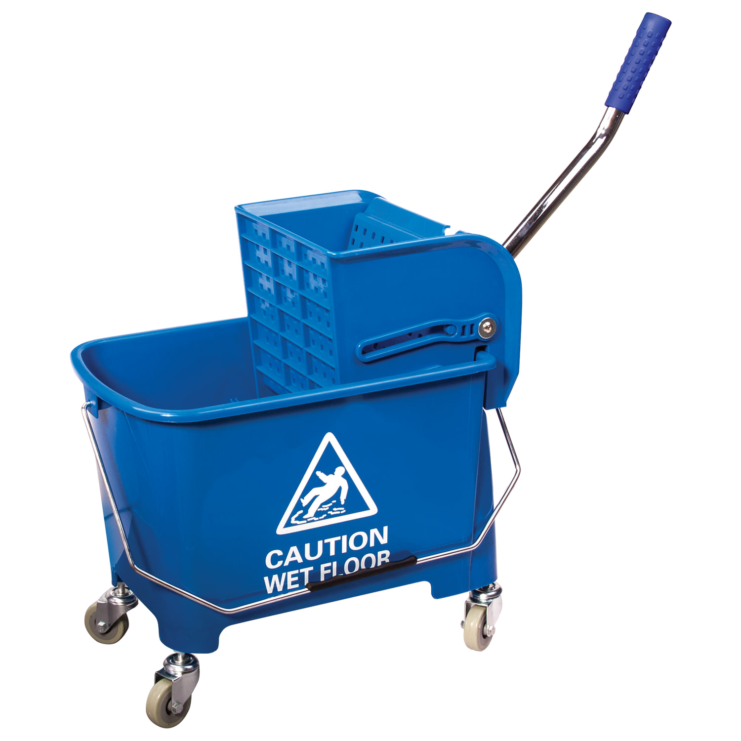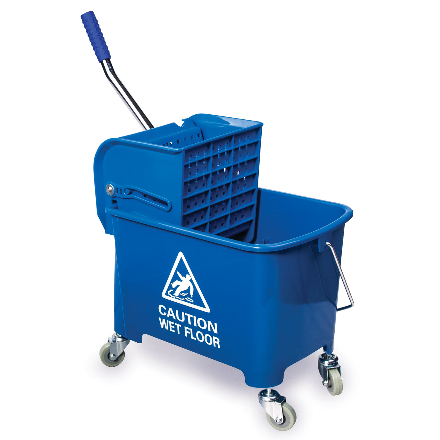 Уборочная тележка BRABIX предназначена для проведения влажной уборки в небольших помещениях. Представляет собой ведро объемом 20 л с двумя отделениями и установленным сверху механическим отжимом. Изготовлена из прочного пластика. Тележка выполнена в синем цвете. Колеса позволяют перемещаться в произвольном направлении. Габариты - 67х27х63 см. Вес - 3,8 кг. Комплектация: - поддон; - транспортная ручка.