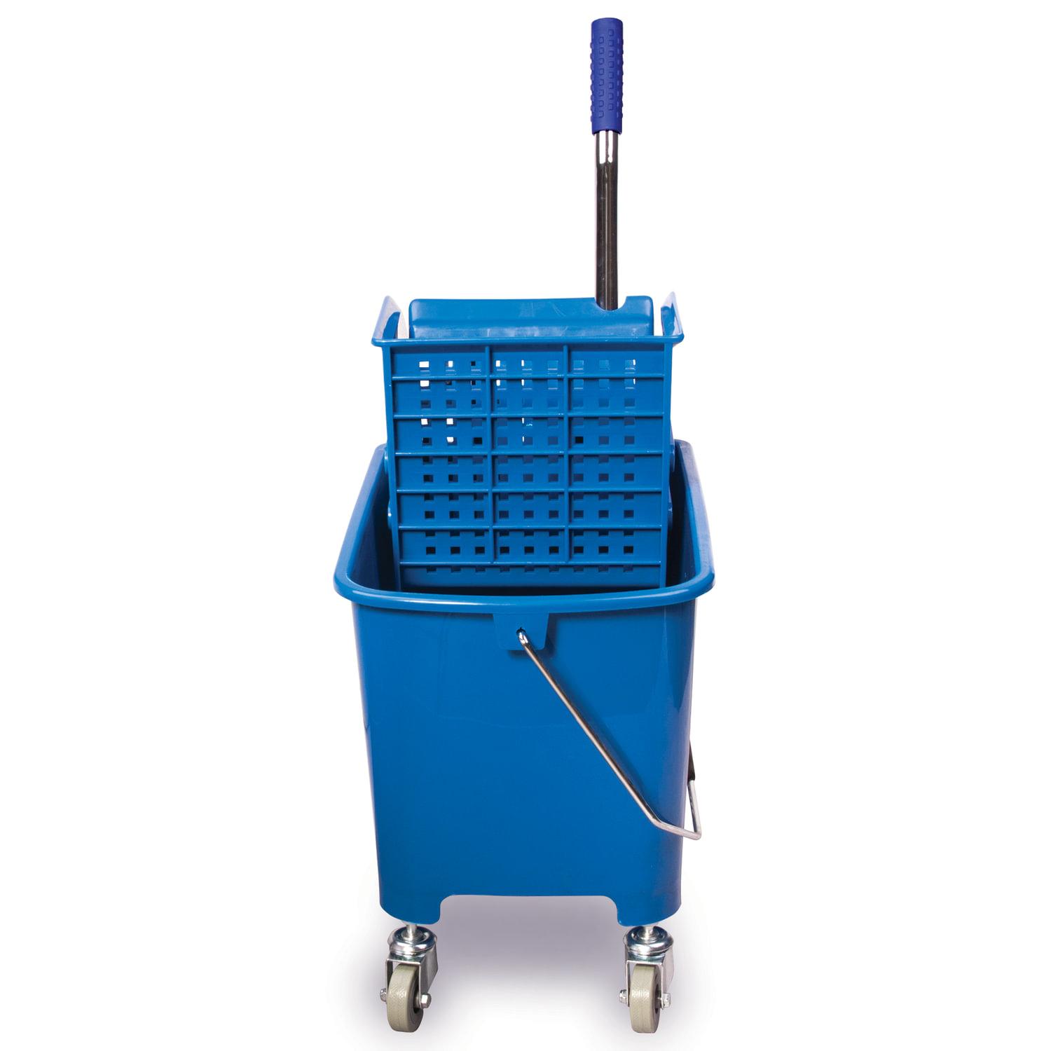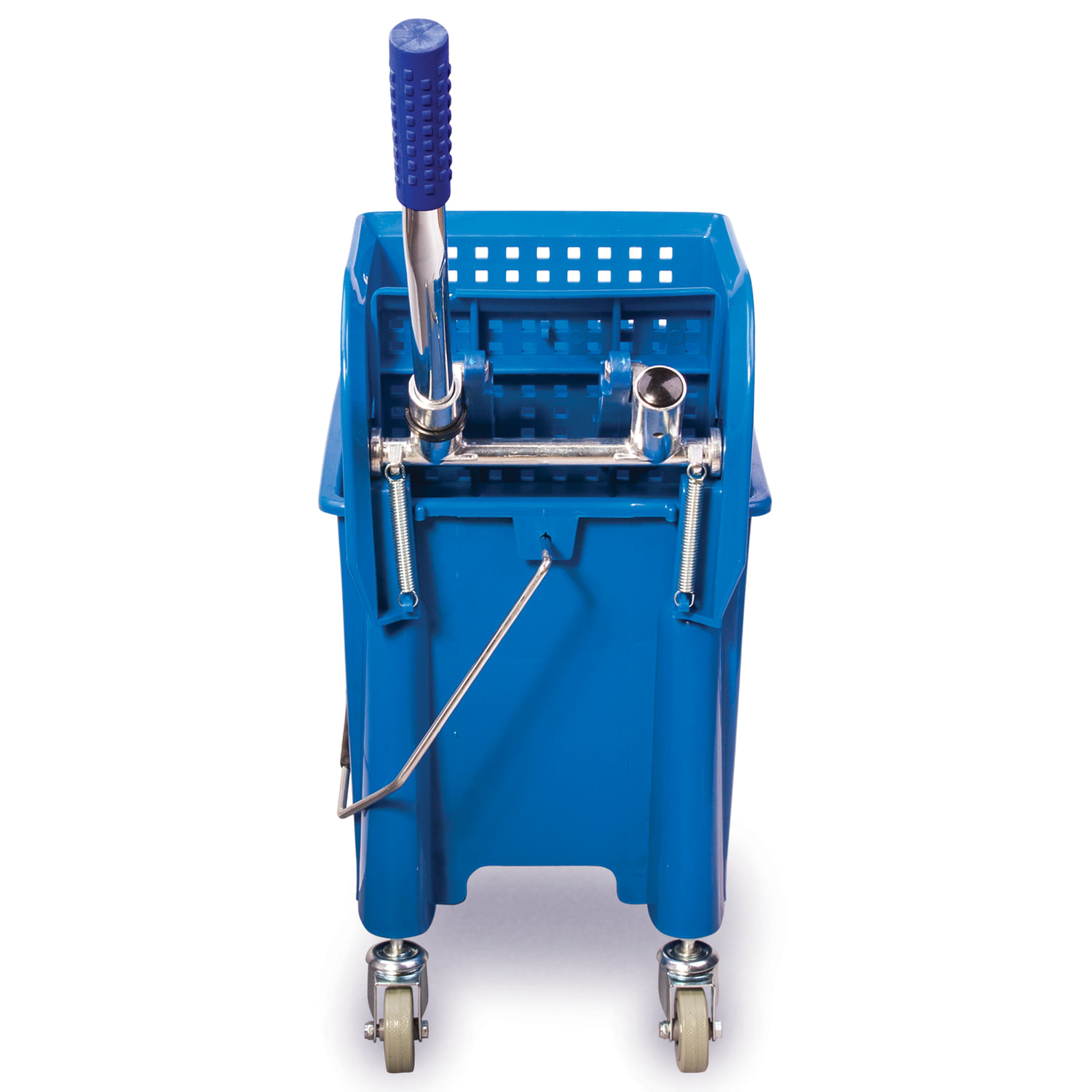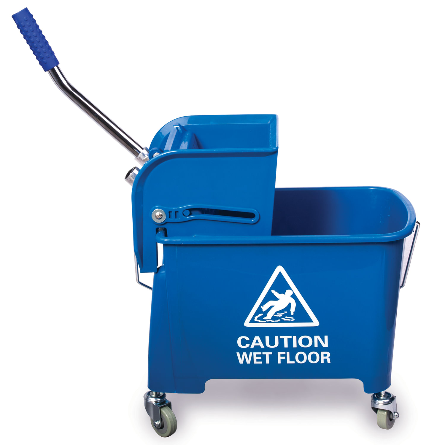 Уборочная тележка BRABIX предназначена для проведения влажной уборки в небольших помещениях. Представляет собой ведро объемом 20 л с двумя отделениями и установленным сверху механическим отжимом. Изготовлена из прочного пластика. Тележка выполнена в синем цвете. Колеса позволяют перемещаться в произвольном направлении. Габариты - 67х27х63 см. Вес - 3,8 кг. Комплектация: - поддон; - транспортная ручка.