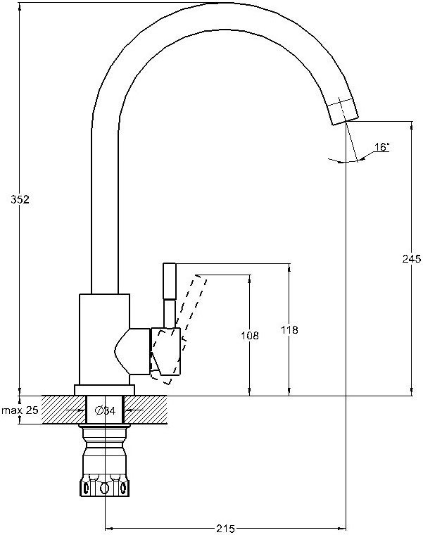Высота смесителя, мм 352