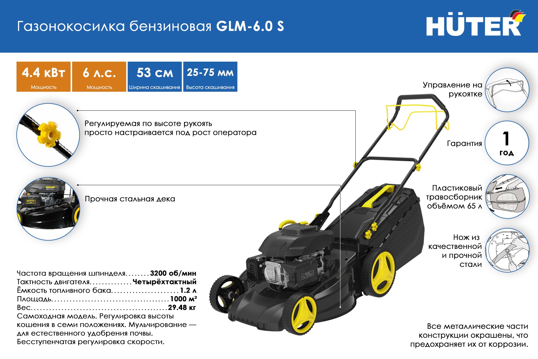 Газонокосилка Huter GLM-6.0S (70.3.8)