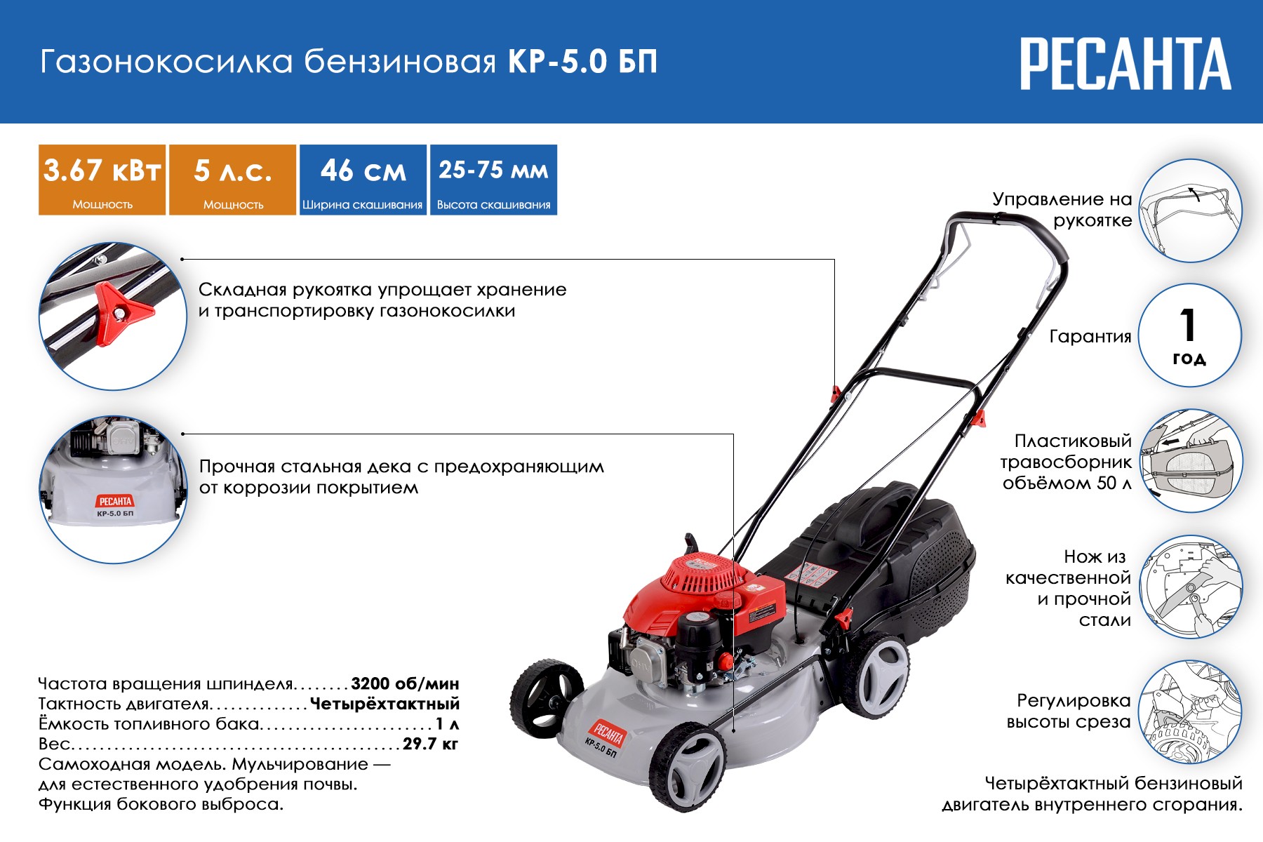 Газонокосилка Ресанта КР-5.0 БП
