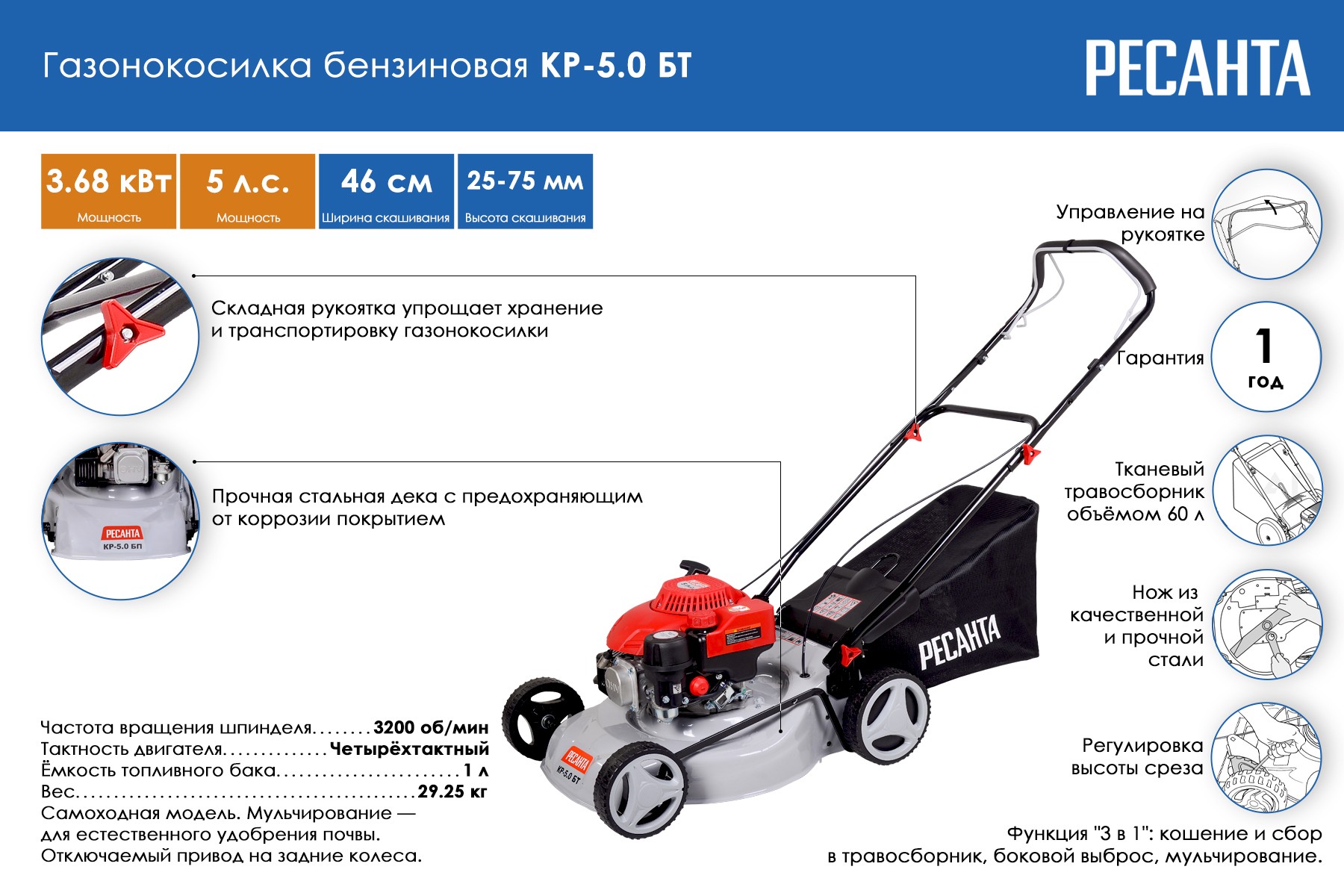 Газонокосилка Ресанта КР-5.0 БТ