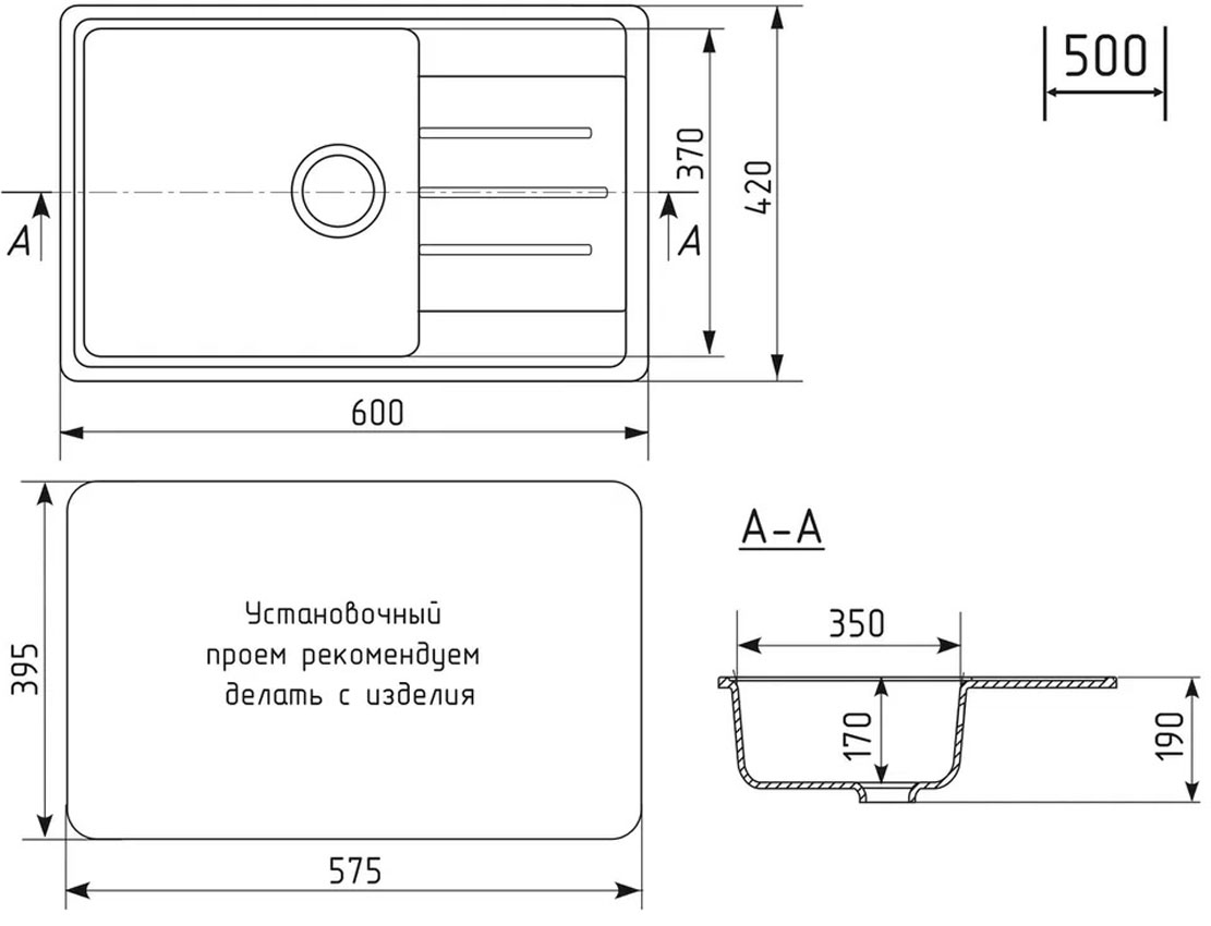 Кухонная мойка Ulgran Practik PR-M 600 черный оникс (PR-M 600-004)