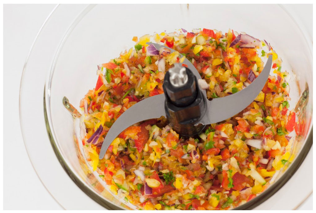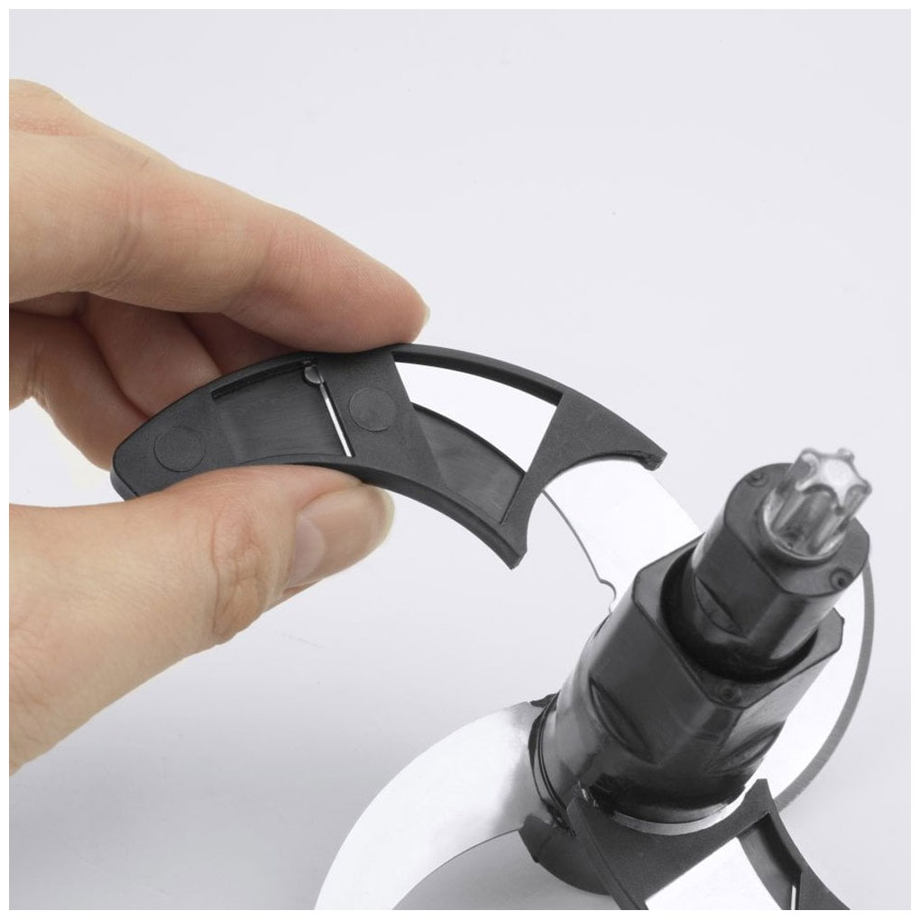 Прибор отличается максимальной простотой в эксплуатации. Оборудование надежно удерживается на столе благодаря защите против скольжения. Устройство имеет компактные размеры (26х18х18 см), что позволяет с легкостью размещать его в любом уголке даже самых маленьких кухонь. Для безопасного хранения предусмотрены защитные колпачки для ножей.