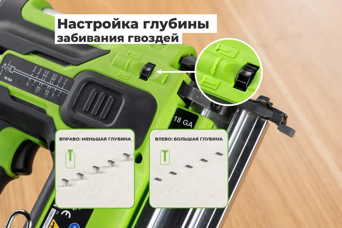 Гвоздезабивной пистолет Greenworks GD24BN (зелено-черный)