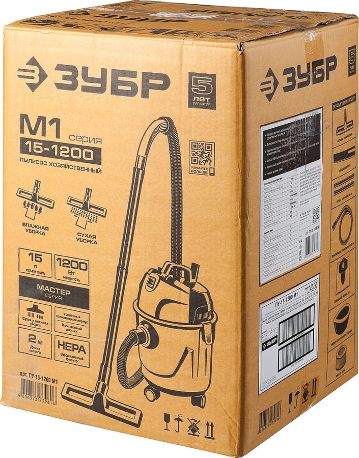 Строительный пылесос Зубр ПУ-15-1200 М1