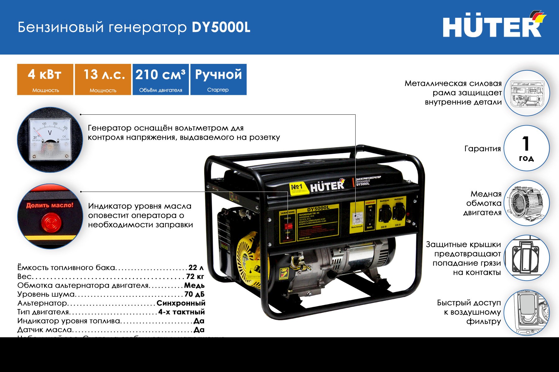 • Тип электростанции: бензиновая