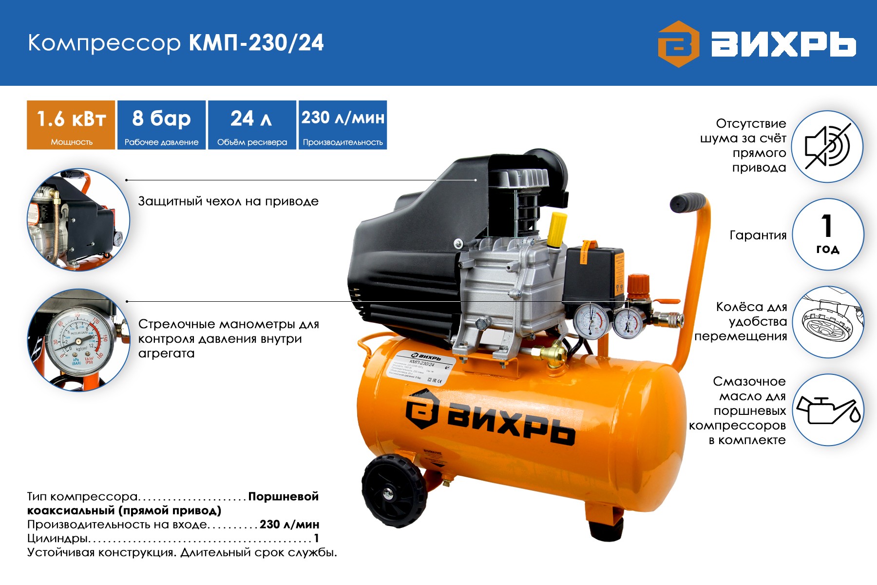 Компрессор Вихрь КМП-230/24