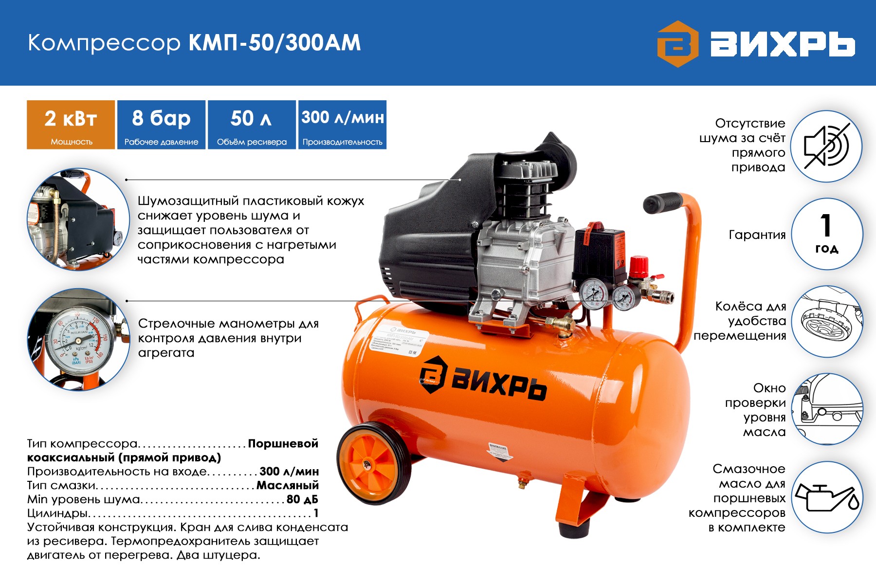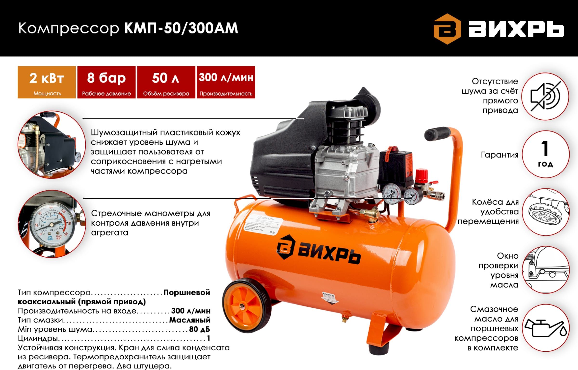 Компрессор Вихрь КМП-50/300АМ