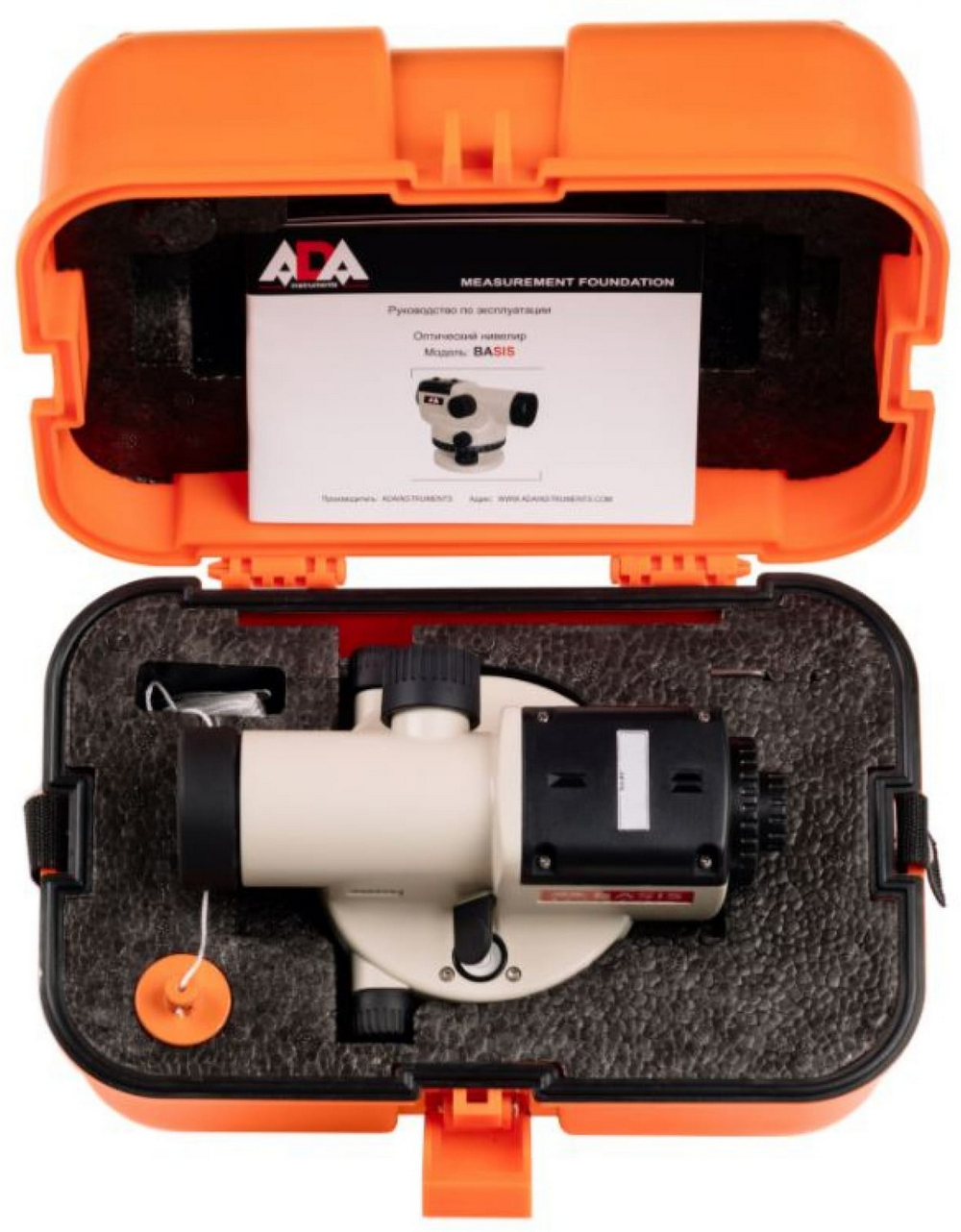 Оптический нивелир ADA Basis способен автоматически выставить линию визирования точно вдоль горизонта. Он позволяет не только с минимальной погрешностью вычислить разницу уровней двух точек, но и измерить расстояние до объекта.