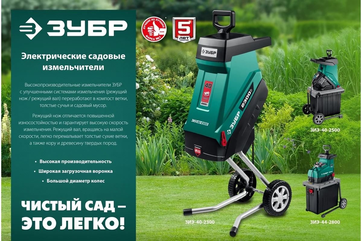 Садовый измельчитель Зубр ЗИЭ-44-2800
