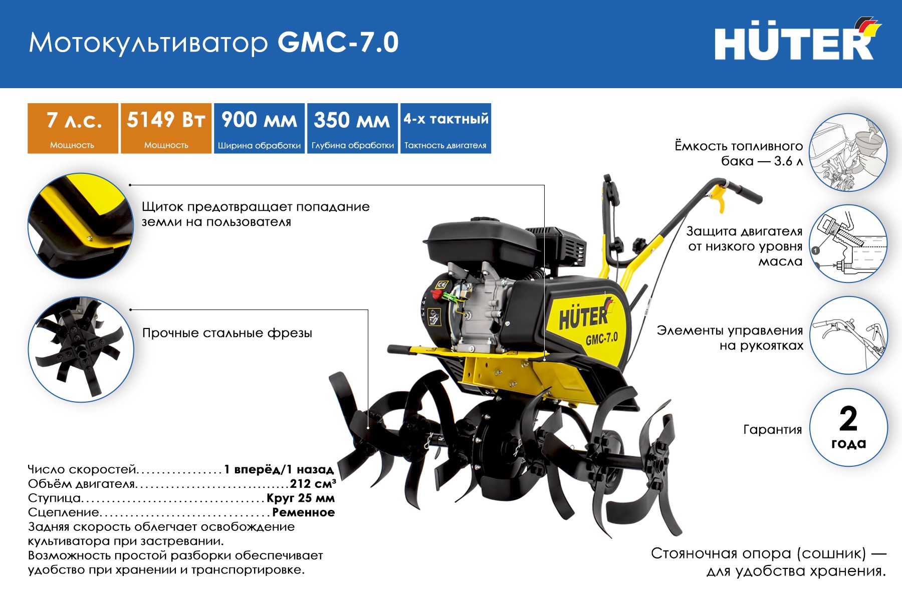 Мотокультиватор Huter GMC-7.0 (70.5.8)