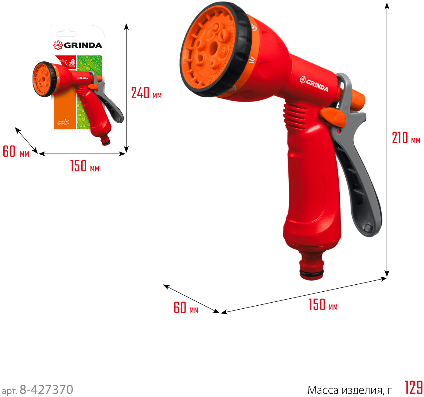 Поливочный пистолет GRINDA P-8 разноцветный (8-427370_z02)