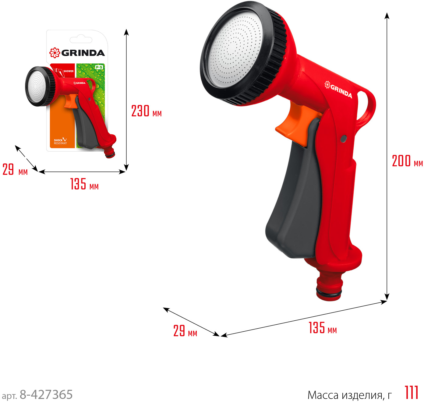Поливочный пистолет GRINDA P-S красно-желтый (8-427365_z01)