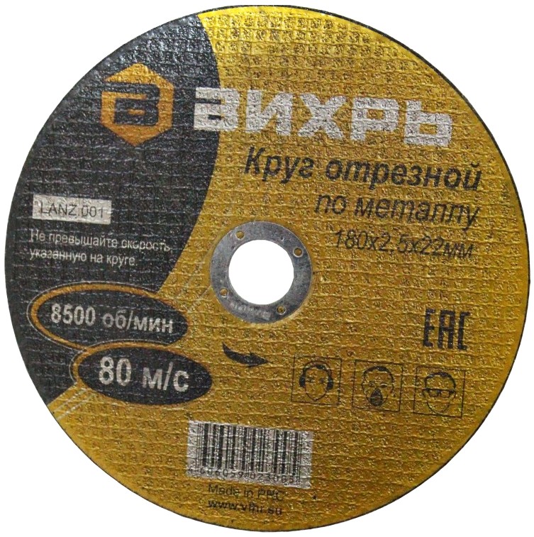 Круг отрезной по металлу Вихрь 180х2,5х22 мм