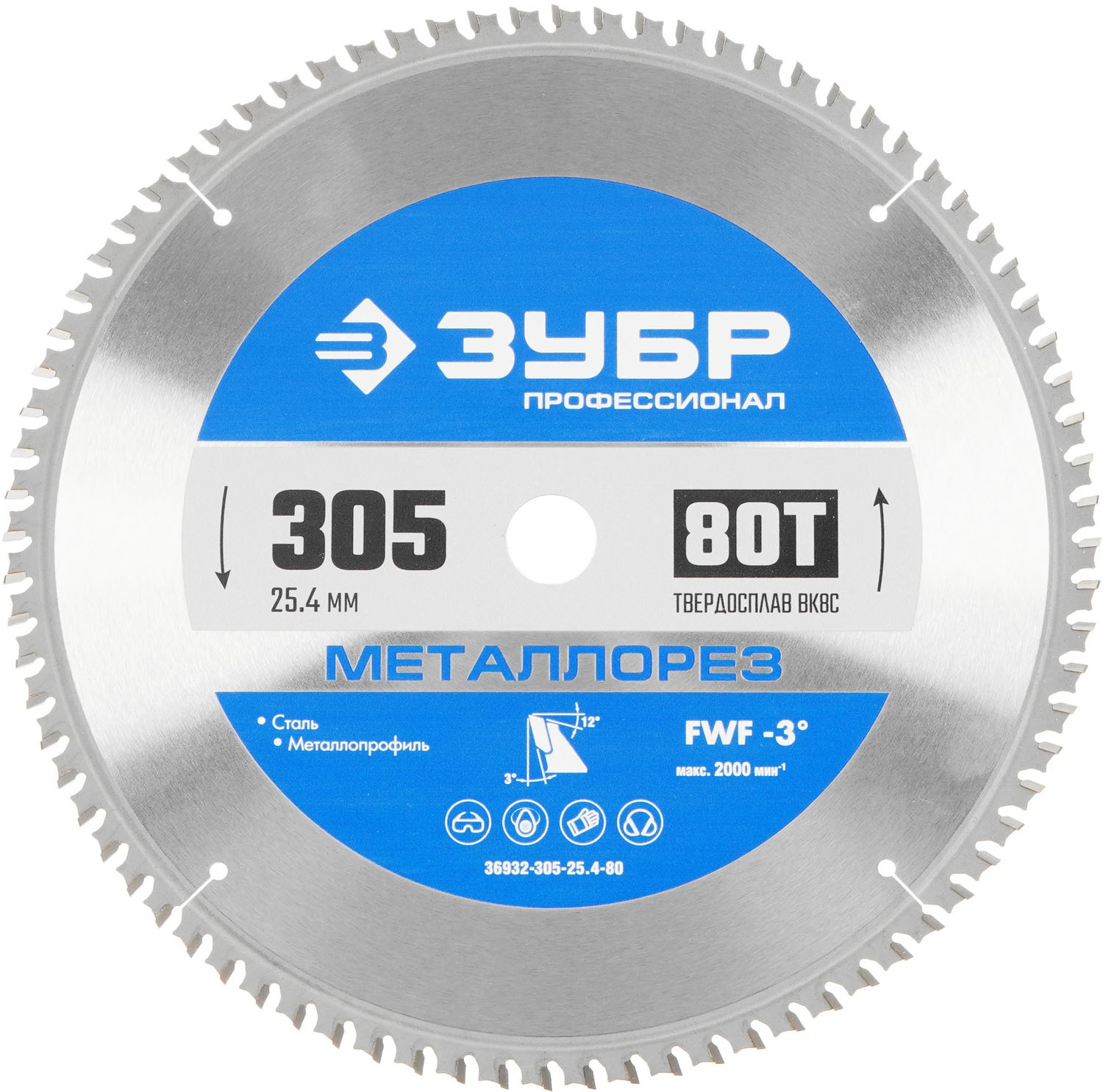 Диск пильный Зубр 36932-305-25.4-80 (серый)
