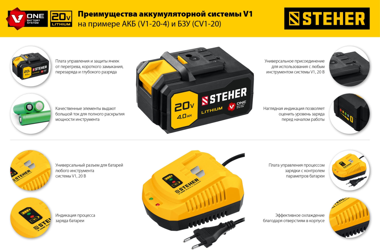 Аккумулятор STEHER V1-20-4 (черно-желтый)