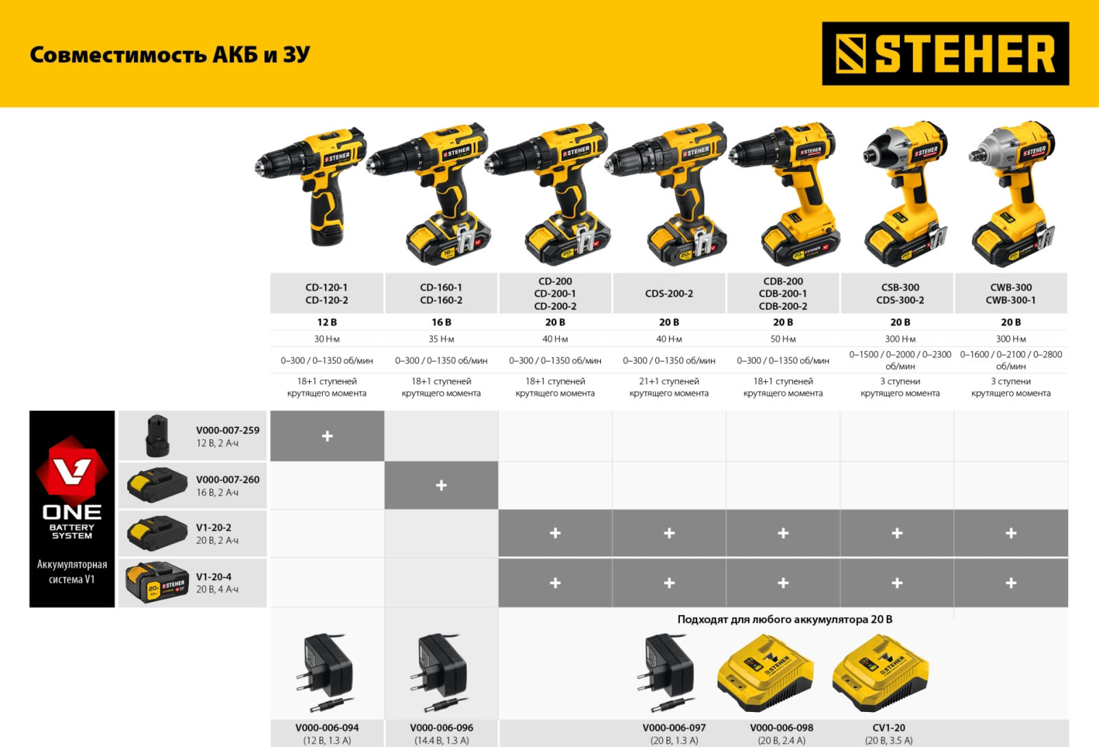 Адаптеры, зарядные устройства и аккумуляторы STEHER
