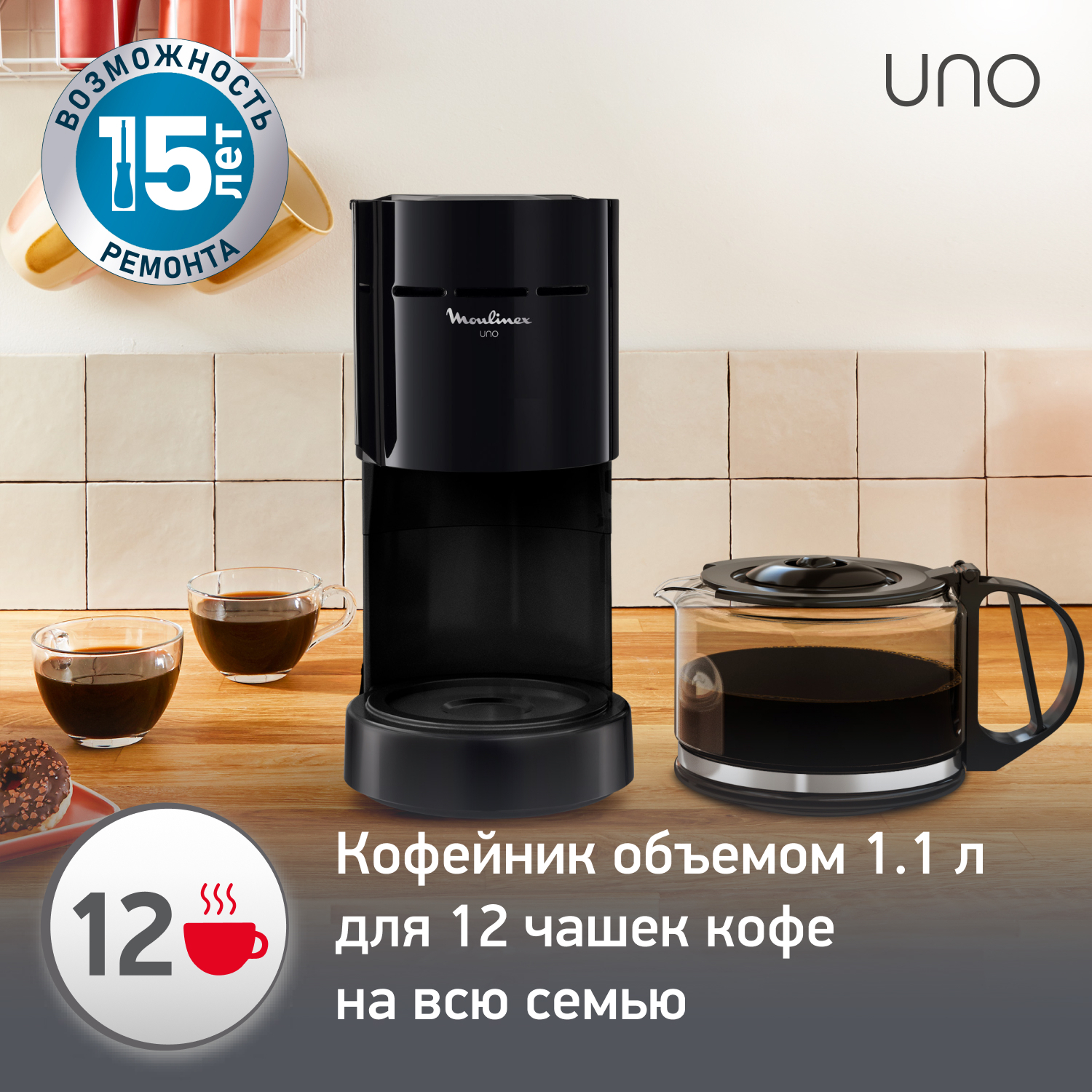 Кофеварка Moulinex Uno FG121811 черный (8010000209)