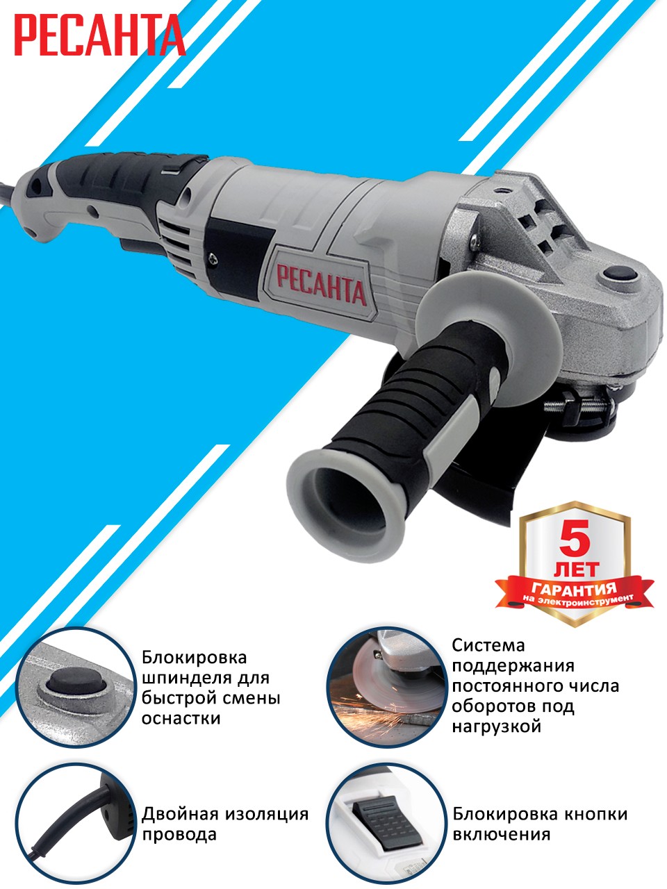 Углошлифовальная машина Ресанта УШМ-125/1200Э (75.12.4)