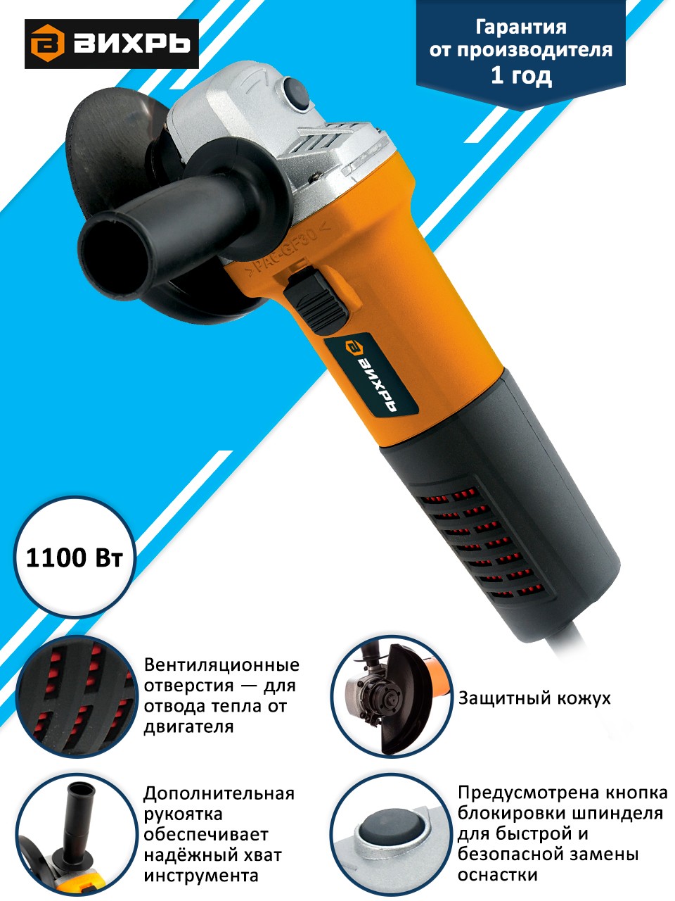 Углошлифовальная машина Вихрь УШМ-125/1100А 72/12/11