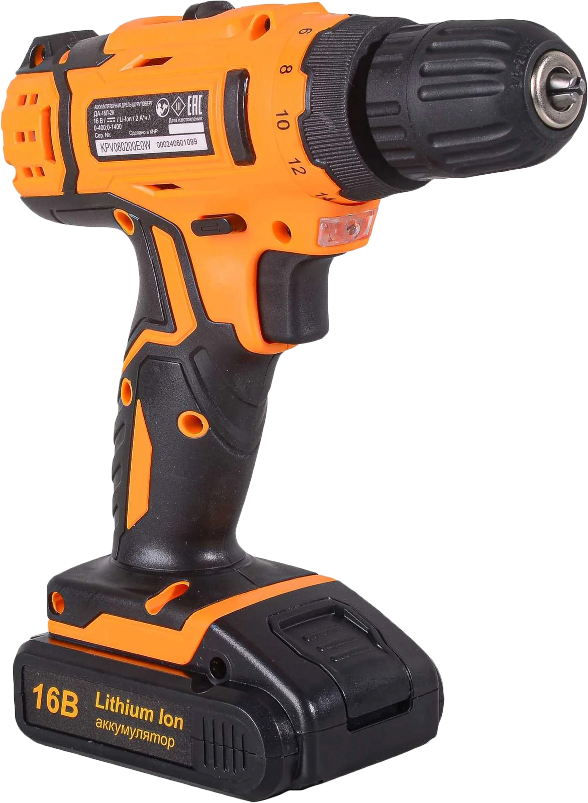 Аккумуляторная дрель Вихрь ДА-16Л-2К черно-оранжевый (72/14/32)