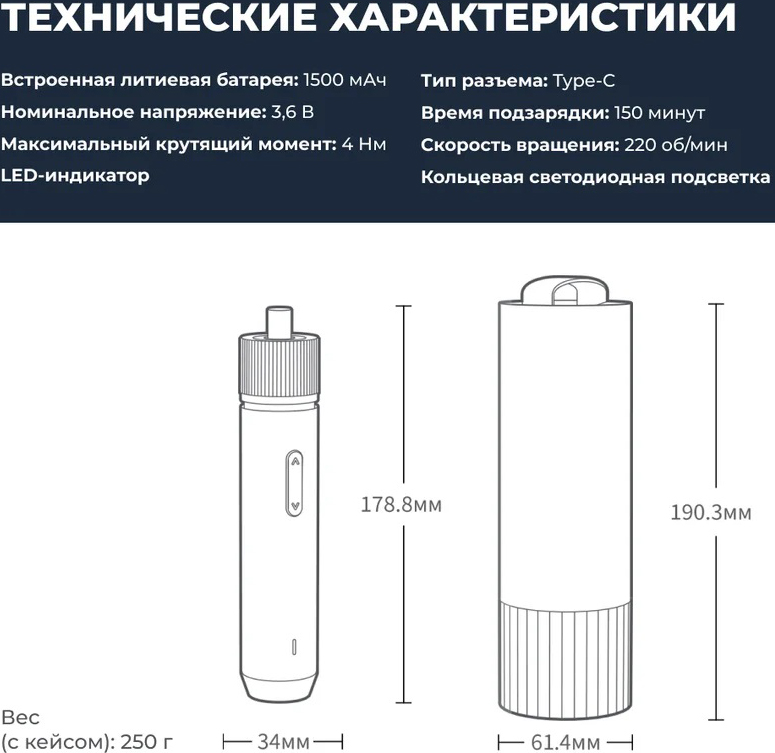 Аккумуляторная отвертка HOTO 3.6В (HTE0001GL | QWLSD001)