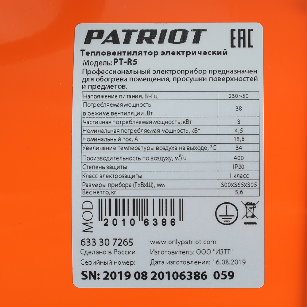 Тепловентилятор PATRIOT PT-R 5 (633307265)