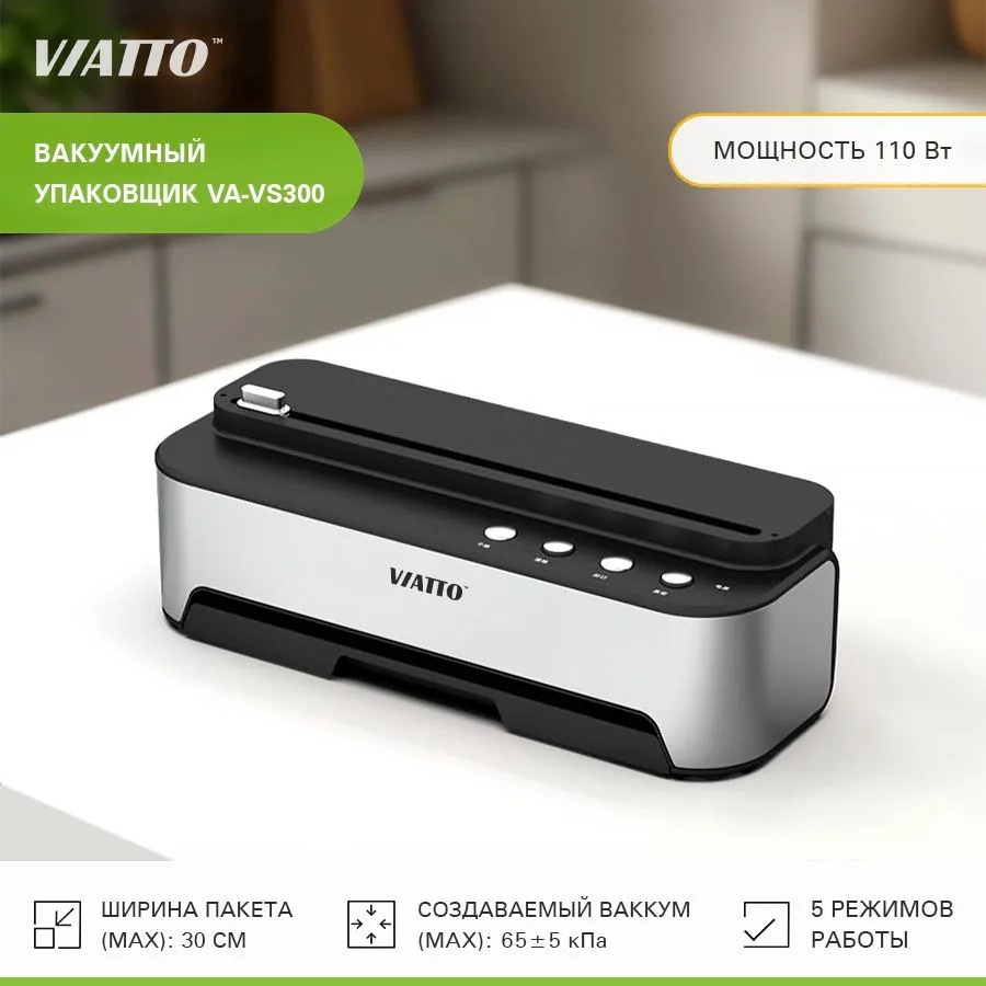 Упаковщик вакуумный Viatto VA-VS300 (черно-серебристый)